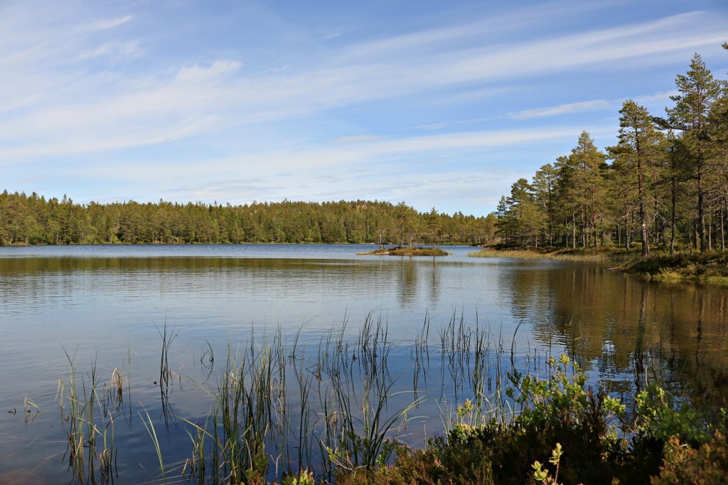 Du triffst auf einen Abzweiger vom Rundweg, der zu einem so schönen See führt, den Stortjärn. Der Weg führt weiter, einmal um den See, eine schöne halbe Stunde.